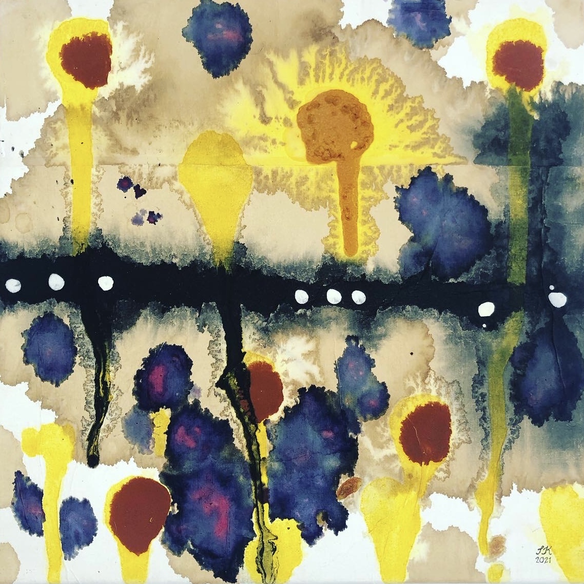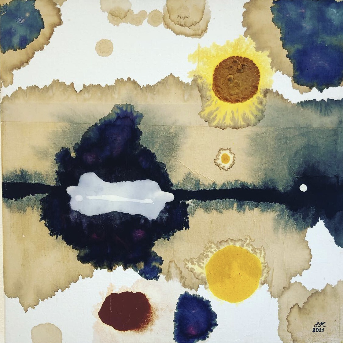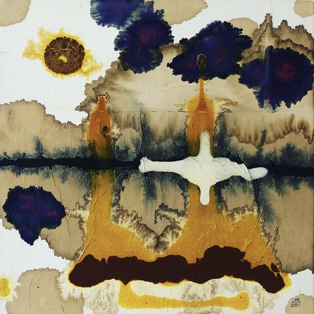 organic colours on mulberry paper and linen canvas Satu Kalliokuusi 2021