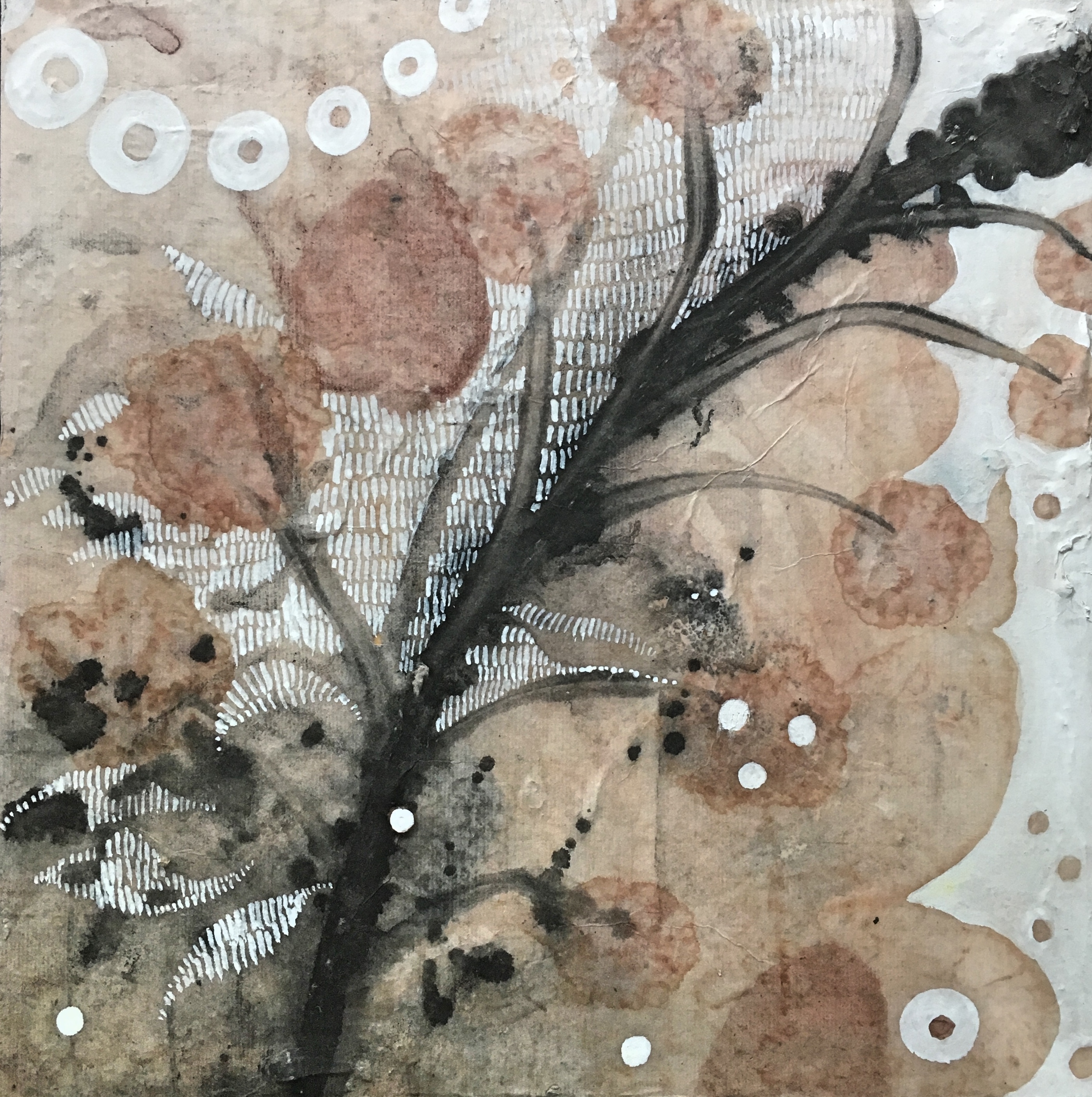 Red wine, coffee, birchbark, Sumi ink and acrylic