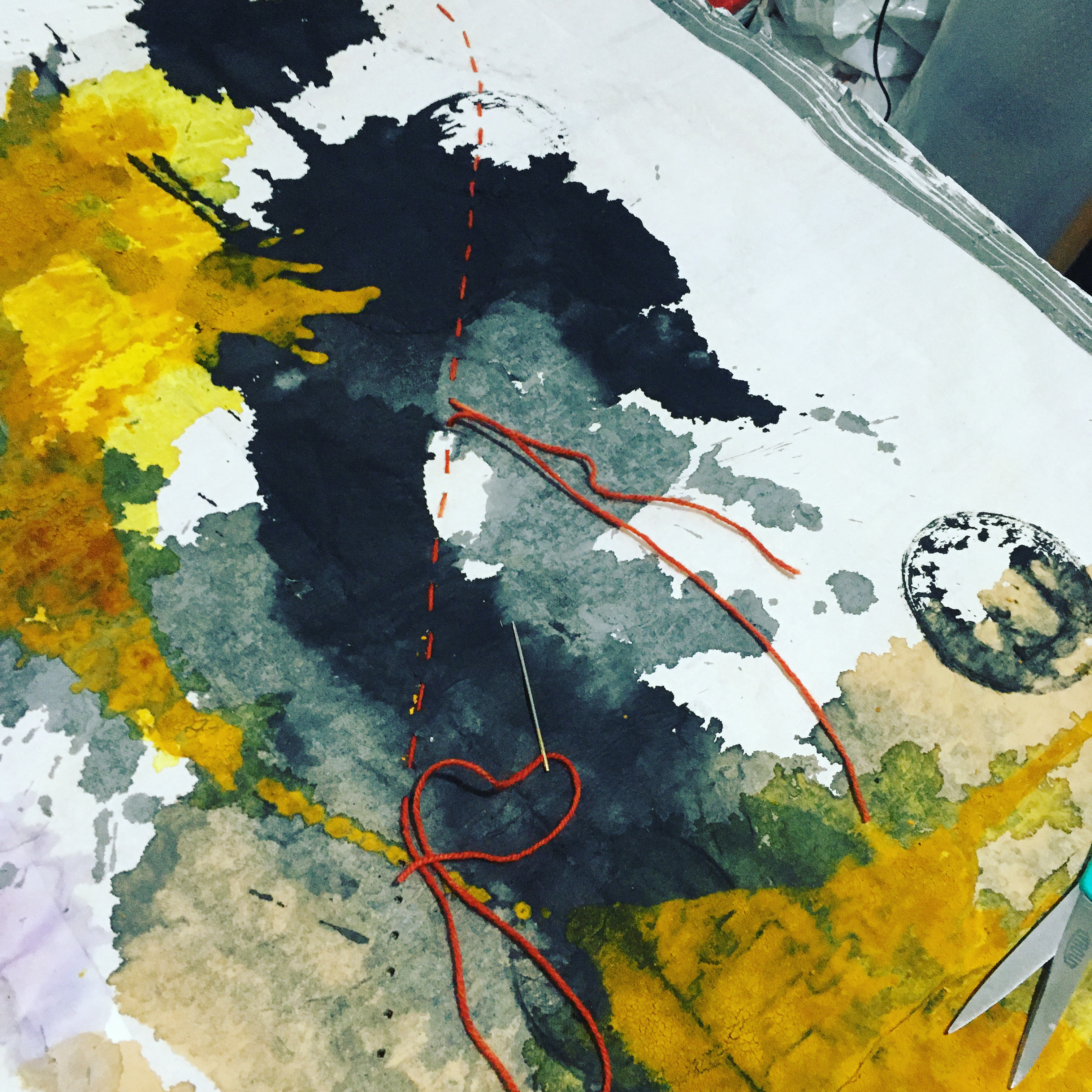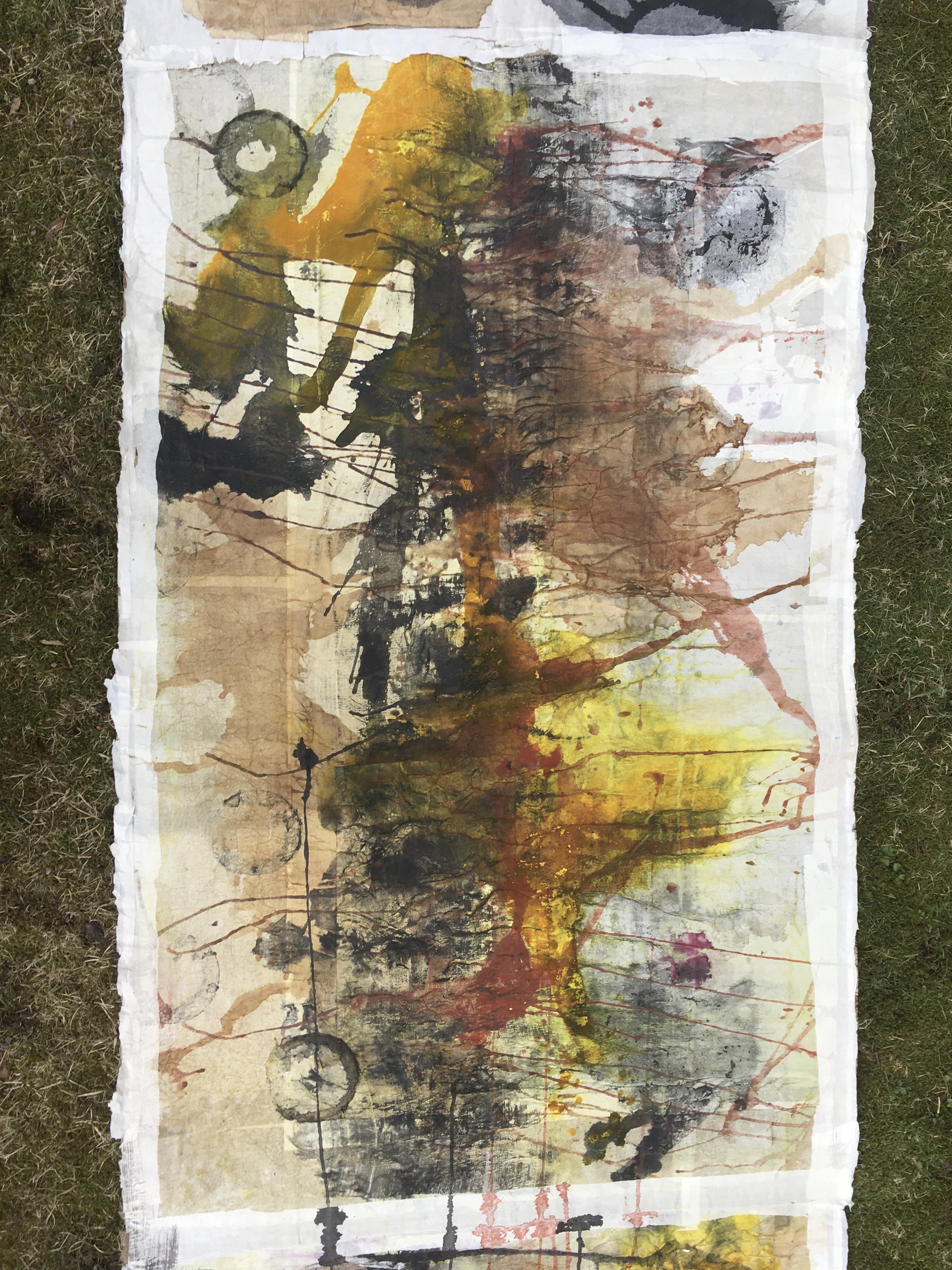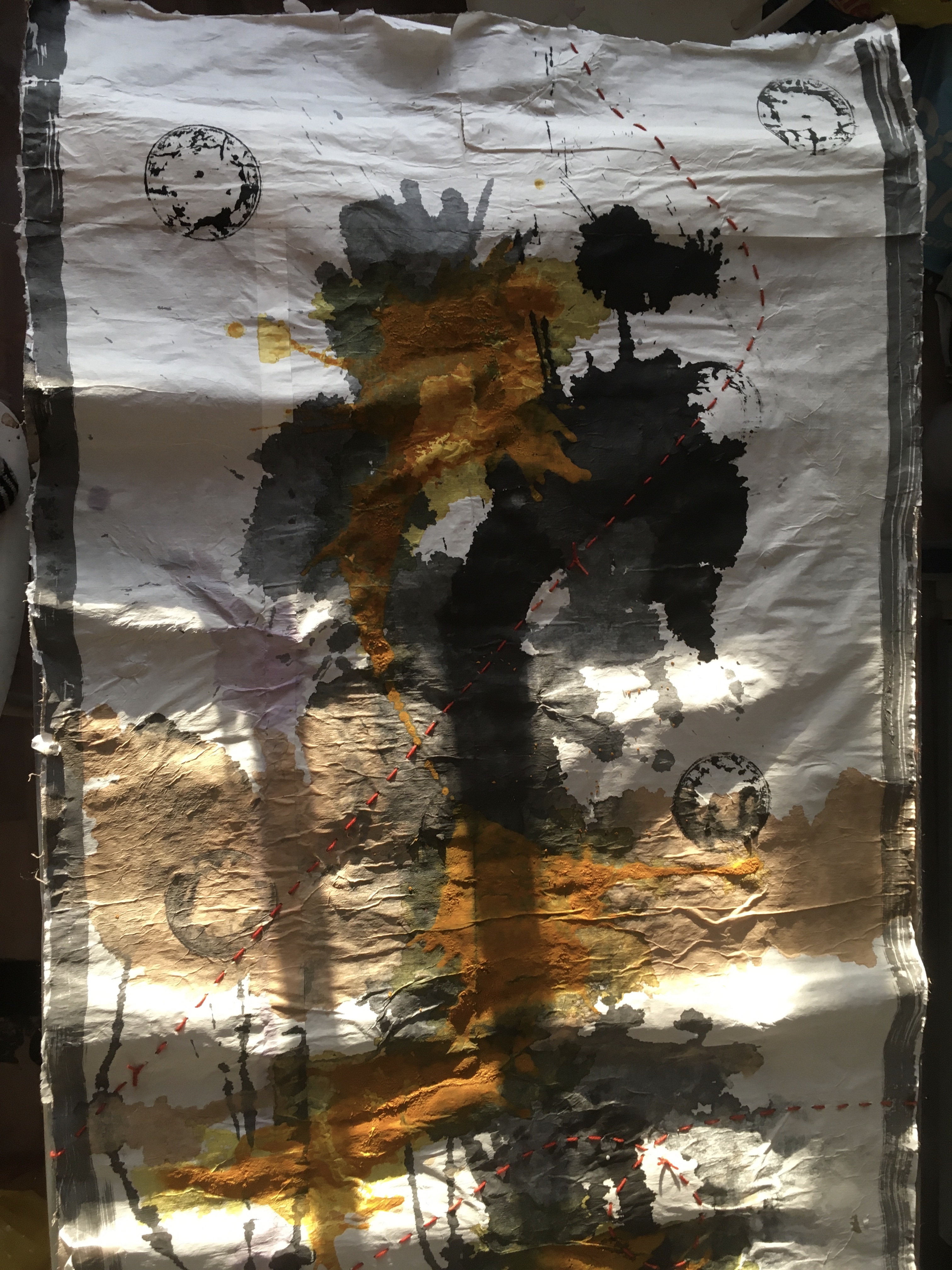 coffee, red wine and Sumi ink and Chinese ink etc.
